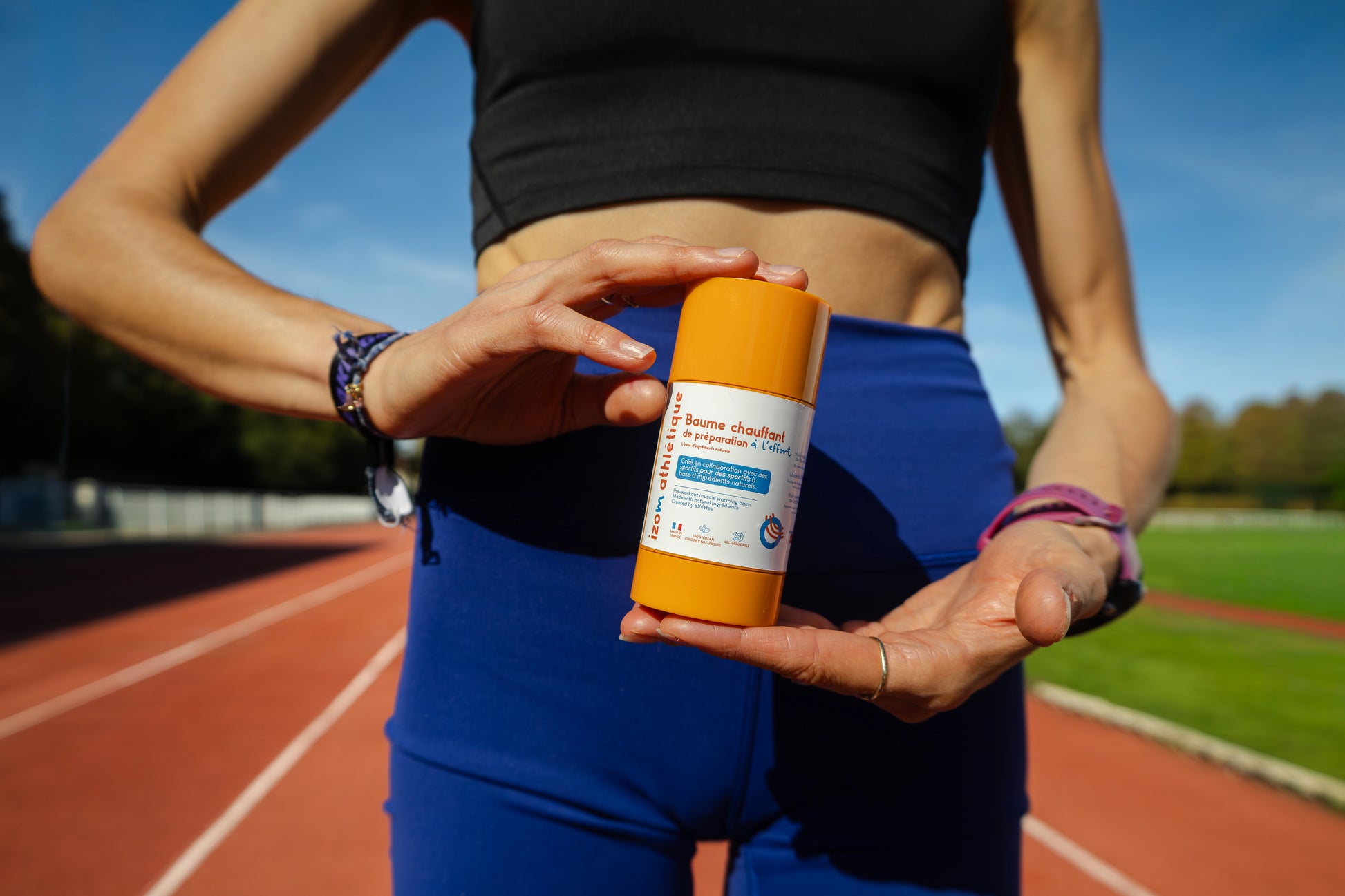 Le baume chauffant IZOM a été formulé pour s’intégrer dans ta routine sportive, que ce soit avant l’effort pour activer tes muscles ou après, pour prolonger les bienfaits du massage.